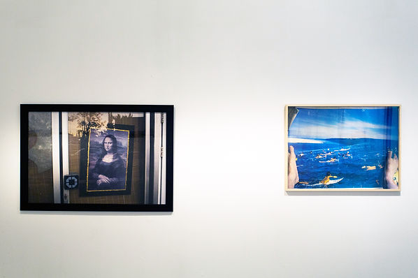 Tom Porat (b.1981) photographs images that are already printed, implemented and scattered in the world, Which means that someone believed in them enough as pictures to hang on a wall. The artist reclaims this act done to the image and repeats it. In both works, the footage appears from two ends of the spectrum of photography -the reproduction (the transparent photography), and the commercial, one which is also pictorial. In "The Mona Lisa", a reproduction is photographed. The reproduction of the most famous painting in the world behind the glass door of an arts and crafts store in Jerusalem. This moment echoes Japanese tourists at the Louvre constantly taking photos of the original painting, located behind glass due to justified fear of theft. In "Perfect Day" two taboos of artistic photography are broken -feet and the sea. This "collage" that brings us back to the moment in history when artists tried to release photography from being something that represents or exchanges reality. The works are based on proper photography: Tom looks straight at artistic photography, while he also considers its existence as a commodity. Both works were originally exhibited in two different commercial fair exhibitions and were not shown together before. The artist's choice of which photos to print and frame in order to sell is well though and intended. This also can be considered as a collectors/curatorial decision regarding one's living room. The way the artworks are shown, sized and framed reclaim again the place where a photo becomes a picture and a picture becomes a photo. The photographic nature, direct, pointing out, appropriates, smiles, seems almost as if Tom is photographing himself taking a photo. We feel his presence. There is no denying the technique but the outcome isn't Hedonist, it's just nice enough to match an imaginary quality standard. There is a sense of belief in photography - the artist obliges, commits, offers us to observe, and not to give up on a second look.